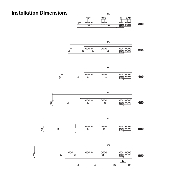 Size    Slide Length     Travel Length       Load Capacity