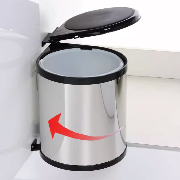 Innovative oscillate lid cover binded to the door panel and with self-opening mechanism on cabinet door (the lid automatically opened and closed while opening the cabinet door), that when the lid is closed, it may keep cabinet door virtually tasteless to stop the transmission of bacteria.